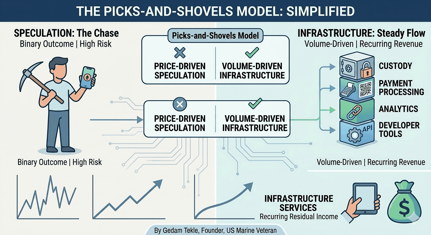 The signal: 70 million American crypto holders, fewer than 2,300 businesses accepting it directly, major platforms validating the category with significant capital, bipartisan federal legislation establishing a regulatory framework, and stablecoin transaction volume surpassing Visa and Mastercard's combined total in 2024.